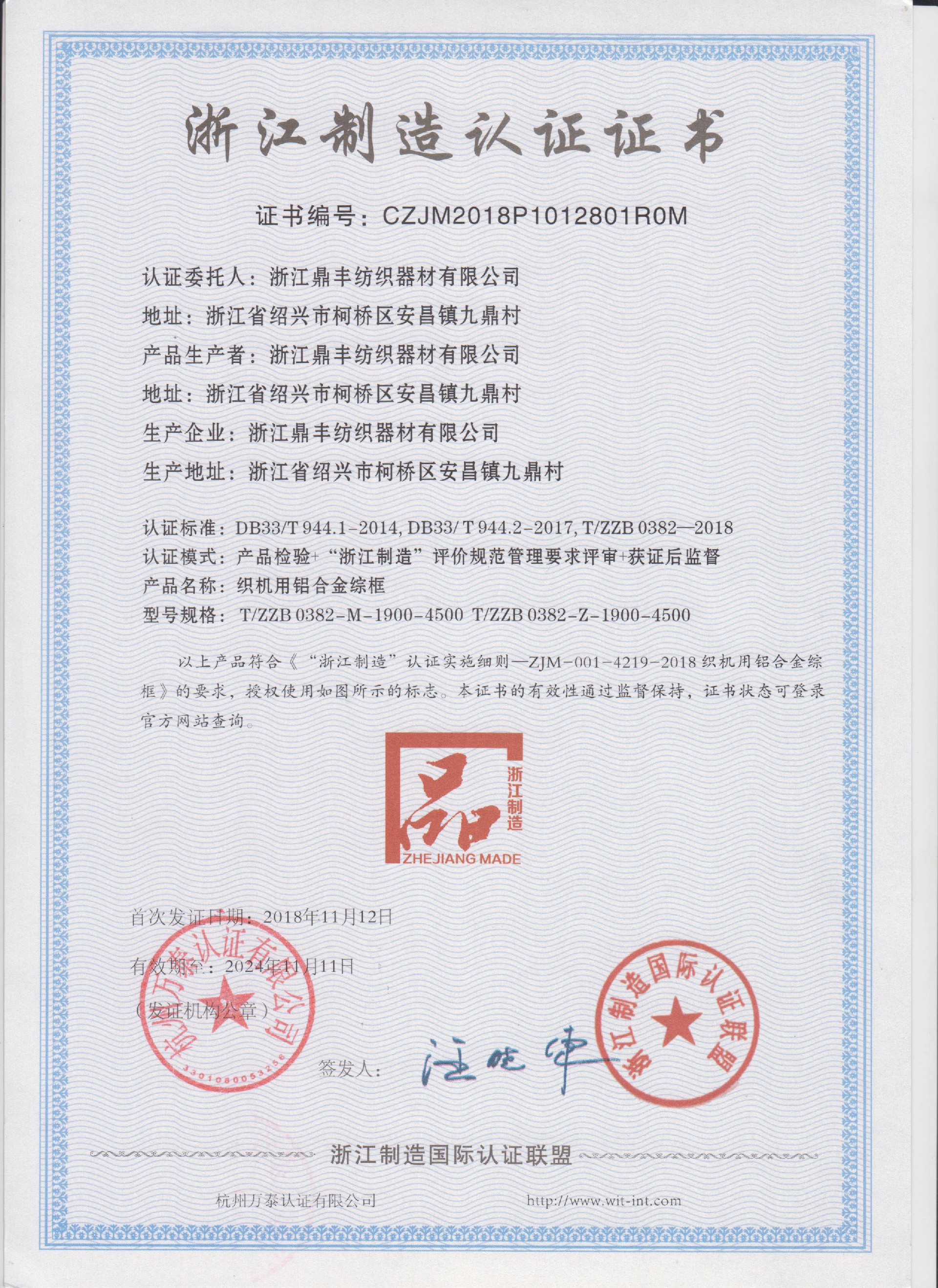 1、貴公司是一家專業(yè)生產(chǎn)各類無梭織機鋁合金鋼筘、綜框、鋼片綜、停經(jīng)片、經(jīng)軸、織軸和卷布輥等產(chǎn)品及配件的民營企業(yè)。公司成立30多年迅速發(fā)展、占領(lǐng)市場的秘決是什么?余定雅:是高品質(zhì)的產(chǎn)品,完善的售后服務(wù)和大規(guī)模的生產(chǎn)能力保證了浙江鼎豐紡織器材有限公司的產(chǎn)品銷售量在國內(nèi)獨占鰲頭。為了與全球市場經(jīng)濟(jì)接軌,鼎豐紡